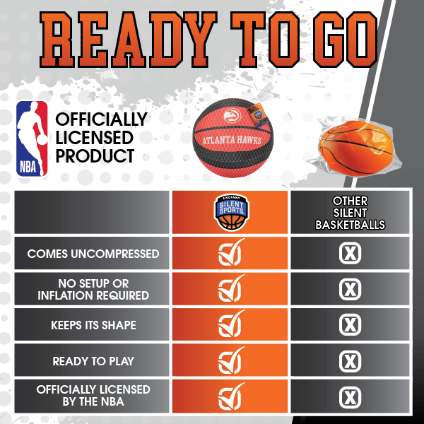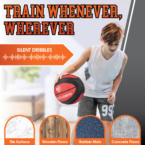 Engineered for quiet performance, the Atlanta Hawks Silent Basketball delivers a true game-day feel without the noise. With a regulation Size 7 build (9.5" diameter, 29.5" circumference), it matches the official specs used in professional and college basketball. The high-quality PU foam provides a responsive bounce, while the solid foam core adds durability for long-lasting use. This ball is wrapped in a full-coverage printed sleeve featuring bold Atlanta Hawks graphics, making it just as striking on display as it is in play. The airless design means no inflation is needed. This ball will not deflate, lose shape, or flatten over time. Always ready to roll, it’s perfect for use indoors or out, whether on tile, hardwood, or carpet. Ideal for quiet dribbling at home, in classrooms, gyms, or anywhere you want to train without making a sound.