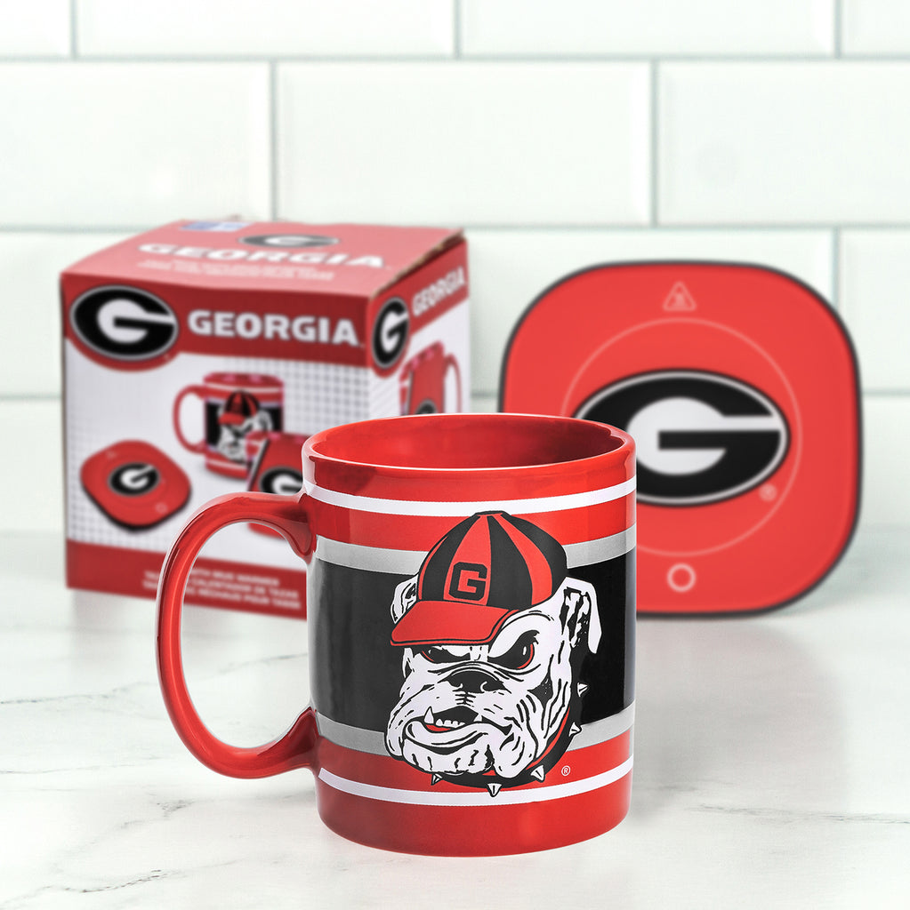 The Georgia Bulldogs Mug Warmer brings your team pride front and center! Officially licensed by the University of Georgia, this stylish warmer with a matching mug ensures your drinks stay at the perfect temperature while displaying your favorite team's colors and logo. Add a touch of Bulldogs pride to your daily routine.