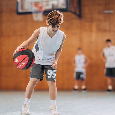 Engineered for quiet performance, the Atlanta Hawks Silent Basketball delivers a true game-day feel without the noise. With a regulation Size 7 build (9.5" diameter, 29.5" circumference), it matches the official specs used in professional and college basketball. The high-quality PU foam provides a responsive bounce, while the solid foam core adds durability for long-lasting use. This ball is wrapped in a full-coverage printed sleeve featuring bold Atlanta Hawks graphics, making it just as striking on display as it is in play. The airless design means no inflation is needed. This ball will not deflate, lose shape, or flatten over time. Always ready to roll, it’s perfect for use indoors or out, whether on tile, hardwood, or carpet. Ideal for quiet dribbling at home, in classrooms, gyms, or anywhere you want to train without making a sound.