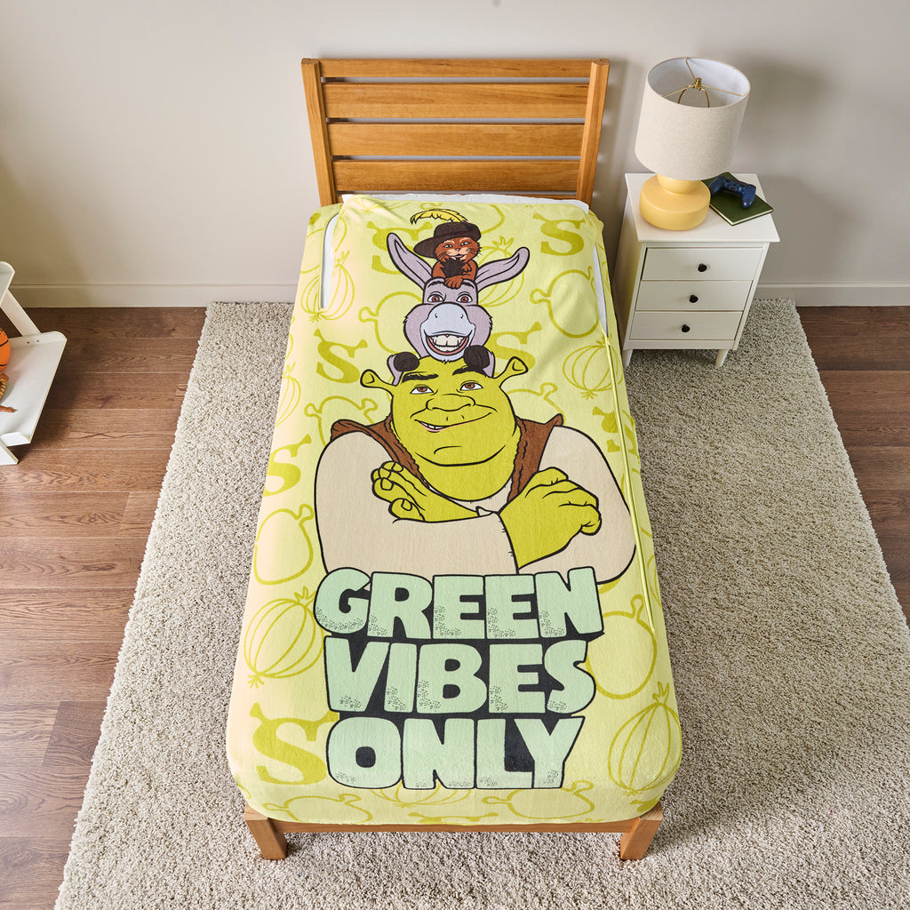 Bring the magic of Far Far Away to your child’s room with the Shrek Zippy Sack Twin Bed Zip-Up Bedding! Designed to fit just like a fitted sheet, this super soft fleece blanket has a patented zip-up closure—keeping kids warm, covered, and cozy all night long. No more messy sheets or kicked-off blankets! The built-in side pocket is perfect for storing books or small treasures. Perfect for twin beds, bunk beds, and RV mattresses. Machine washable for easy care!